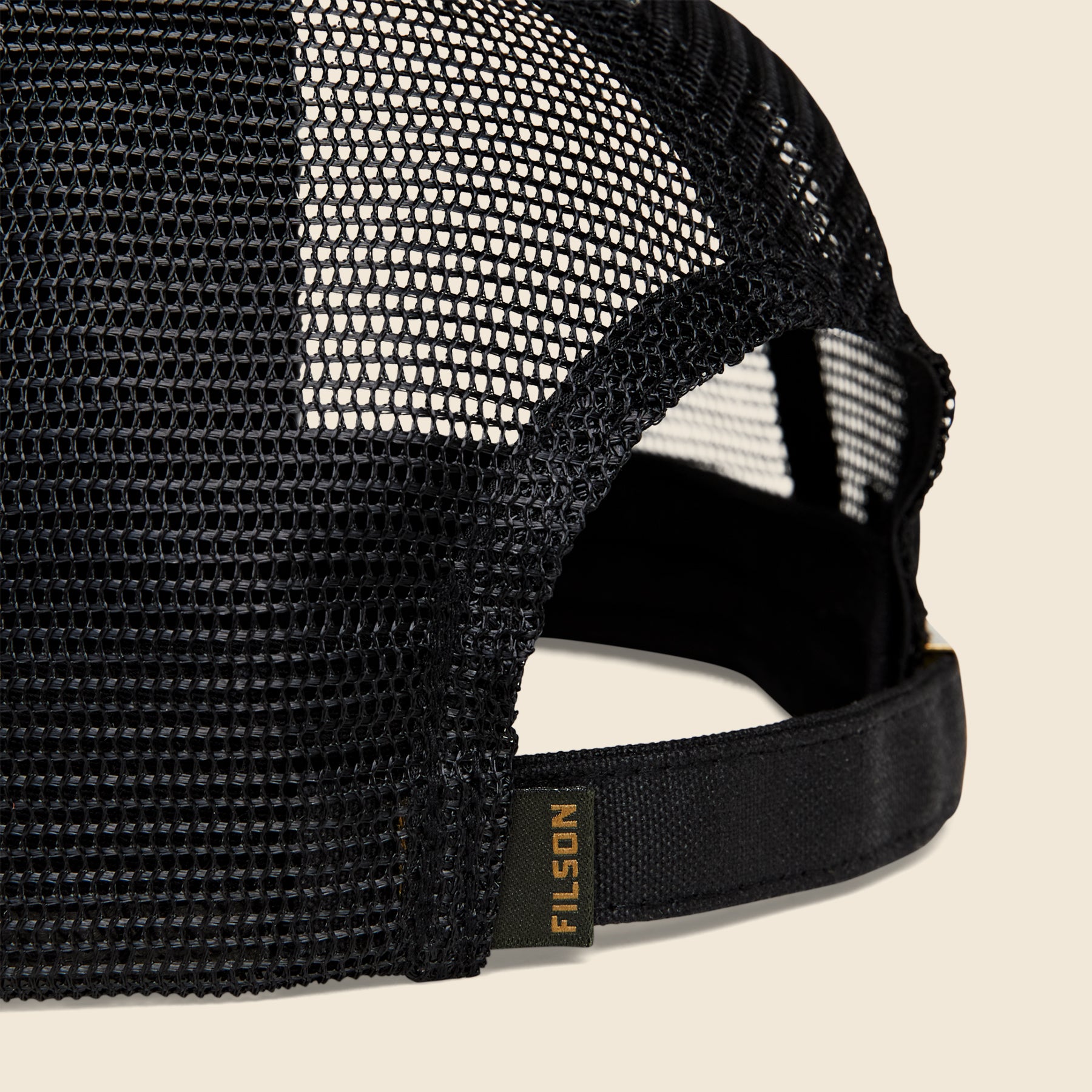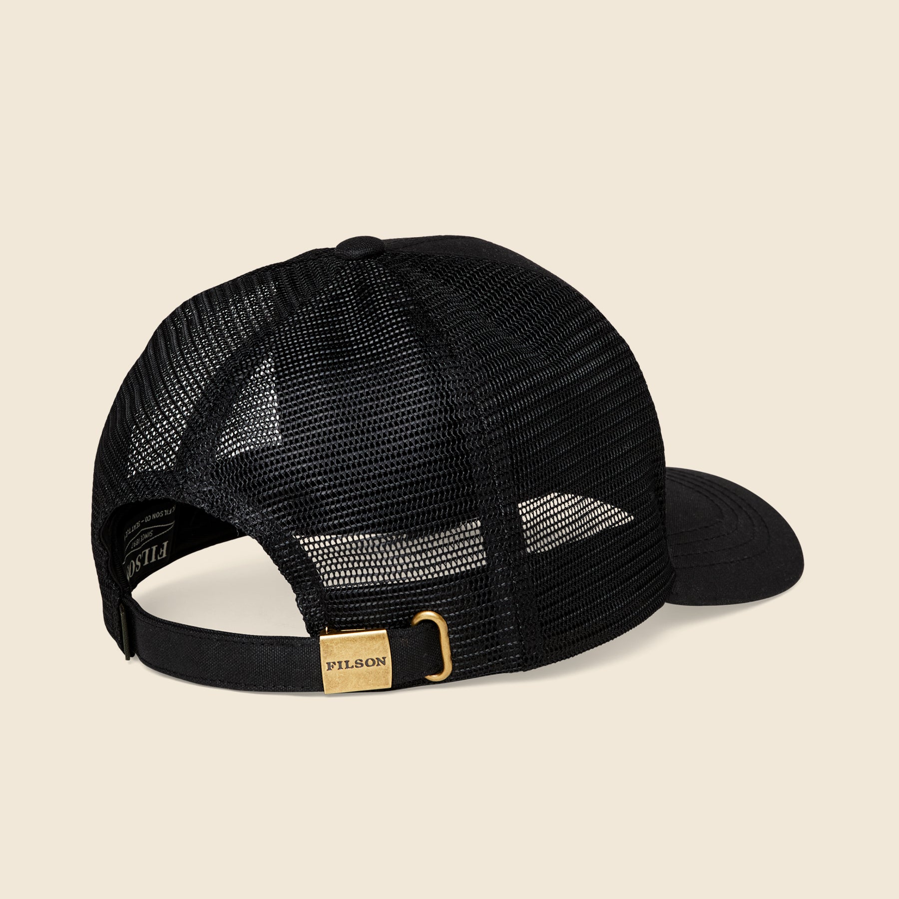 A hardwearing essential with timeless workwear roots, this classic logger mesh cap is built for everyday wear—rain or shine. Crafted with Filson’s legendary oil-finish Tin Cloth or high-vis Blaze Orange, it offers water-repellent durability where it counts, while the breathable mesh back keeps you cool on the move. The six-panel design ensures a structured, comfortable fit, finished with a pre-curved bill that shields from sun and drizzle alike. An adjustable strap with a debossed Filson brass buckle lets you dial in the fit, while the bold embroidered patch up front adds that signature rugged charm.