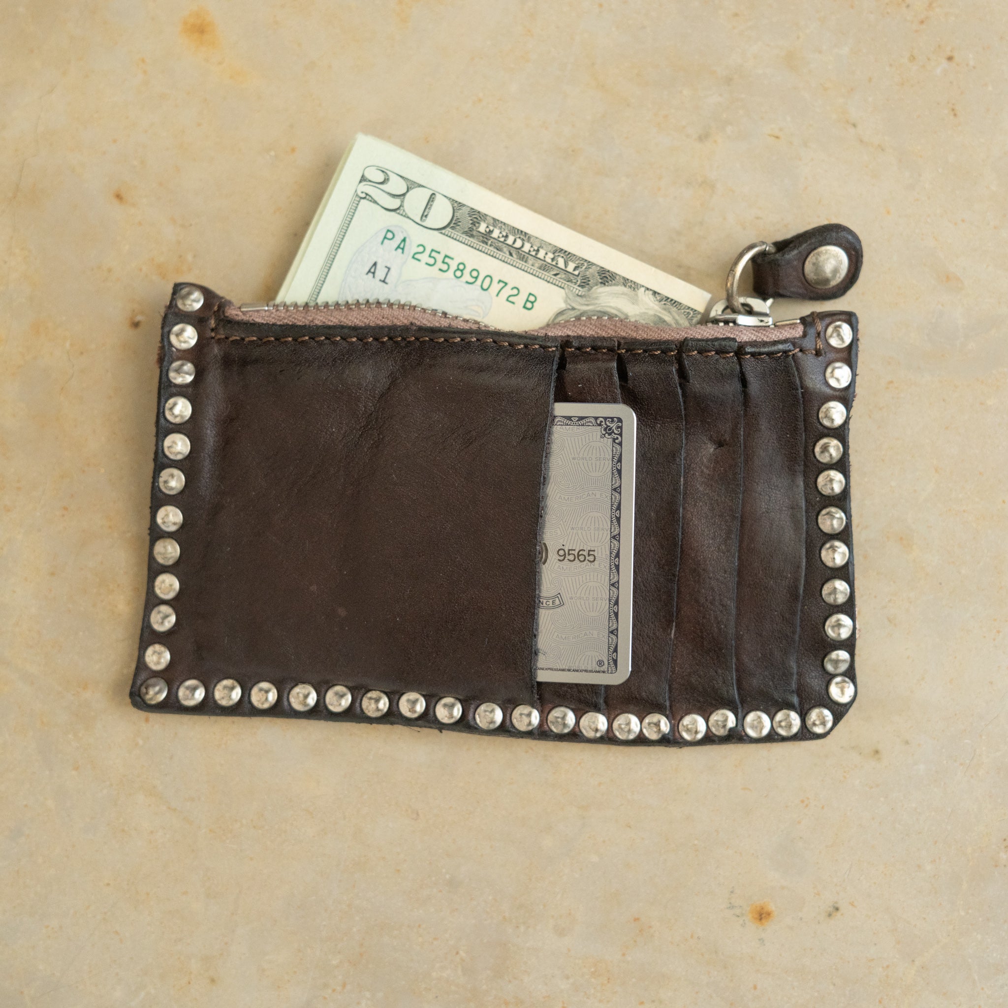 Parigi Studded Card Holder w/Zipper Brown