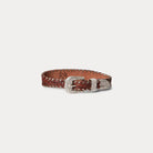 This Double RL tooled leather bracelet blends rugged Western craftsmanship with refined detail. Hand-tooled patterns give the leather rich texture and character, while silver-toned metal stitching along the edges adds a subtle gleam. Finished with a carved, silver-toned buckle, it’s built to age beautifully, softening and darkening over time. Whether worn solo or stacked, it’s a small piece with a big presence—true to Double RL’s heritage-driven style.