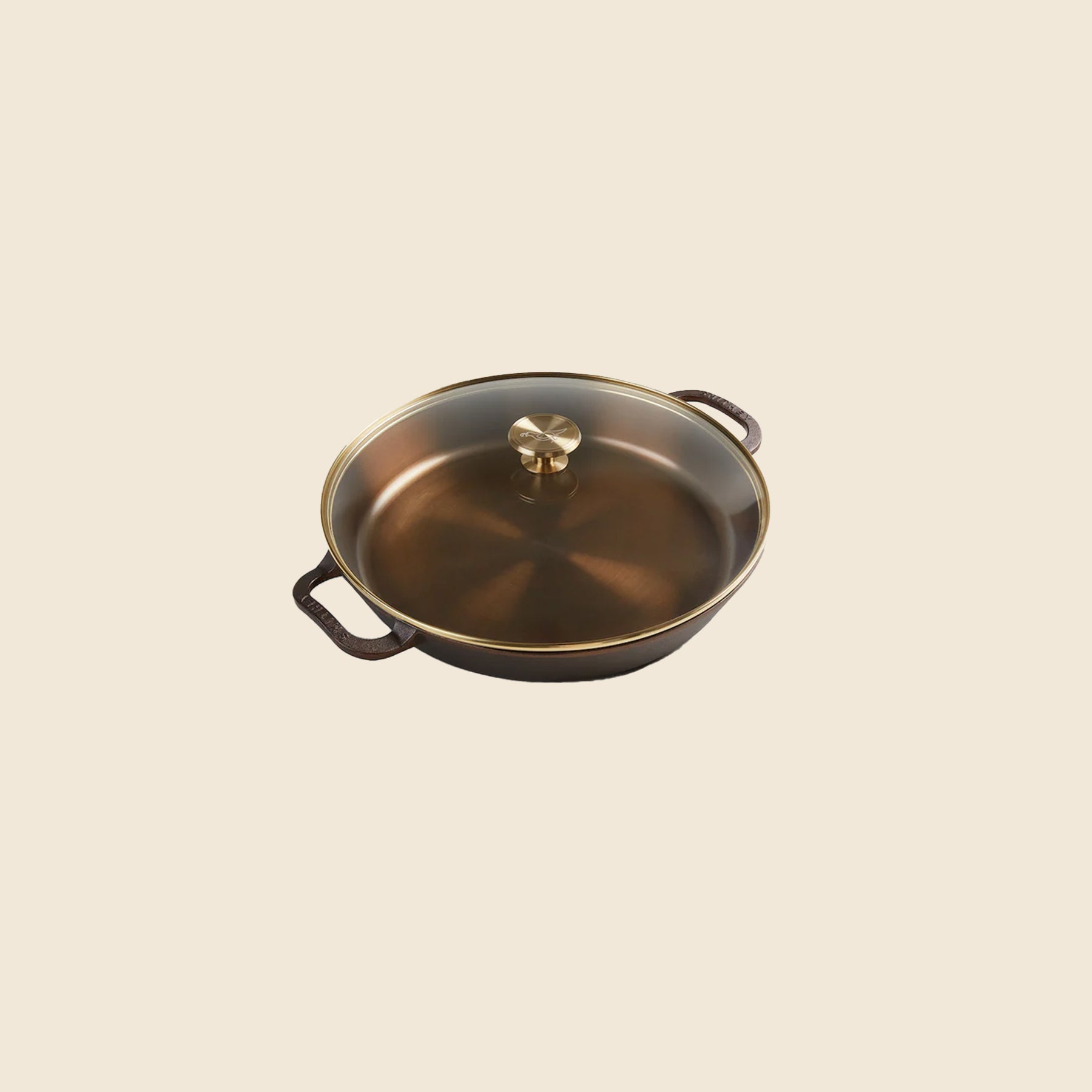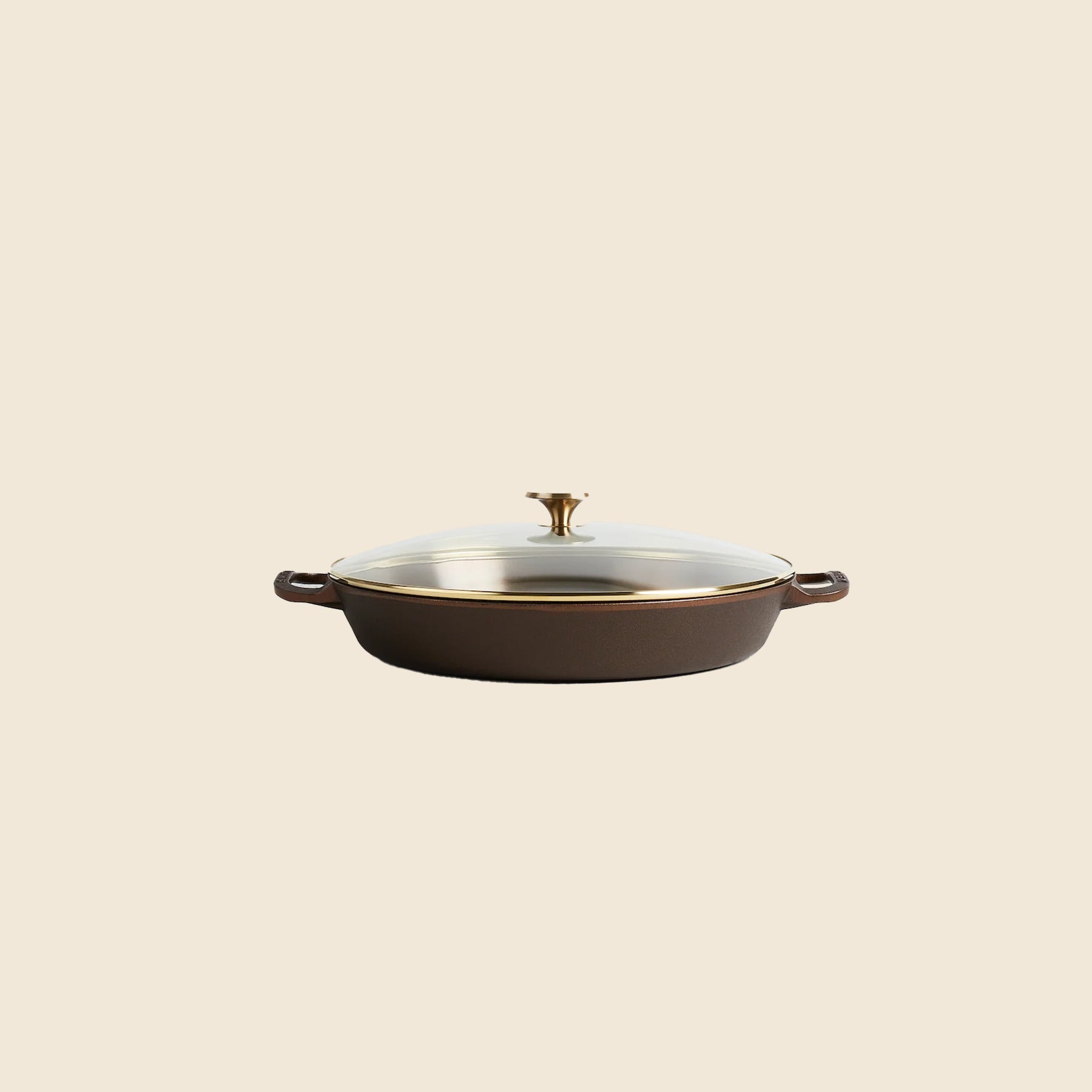 Complete your Smithey setup with this sleek glass lid—perfect for steaming, braising, keeping dishes warm, or simply containing splatter. Designed to fit snugly, it locks in heat and moisture while giving you a clear view of what’s cooking. A smart, functional finish to your cast iron companion.