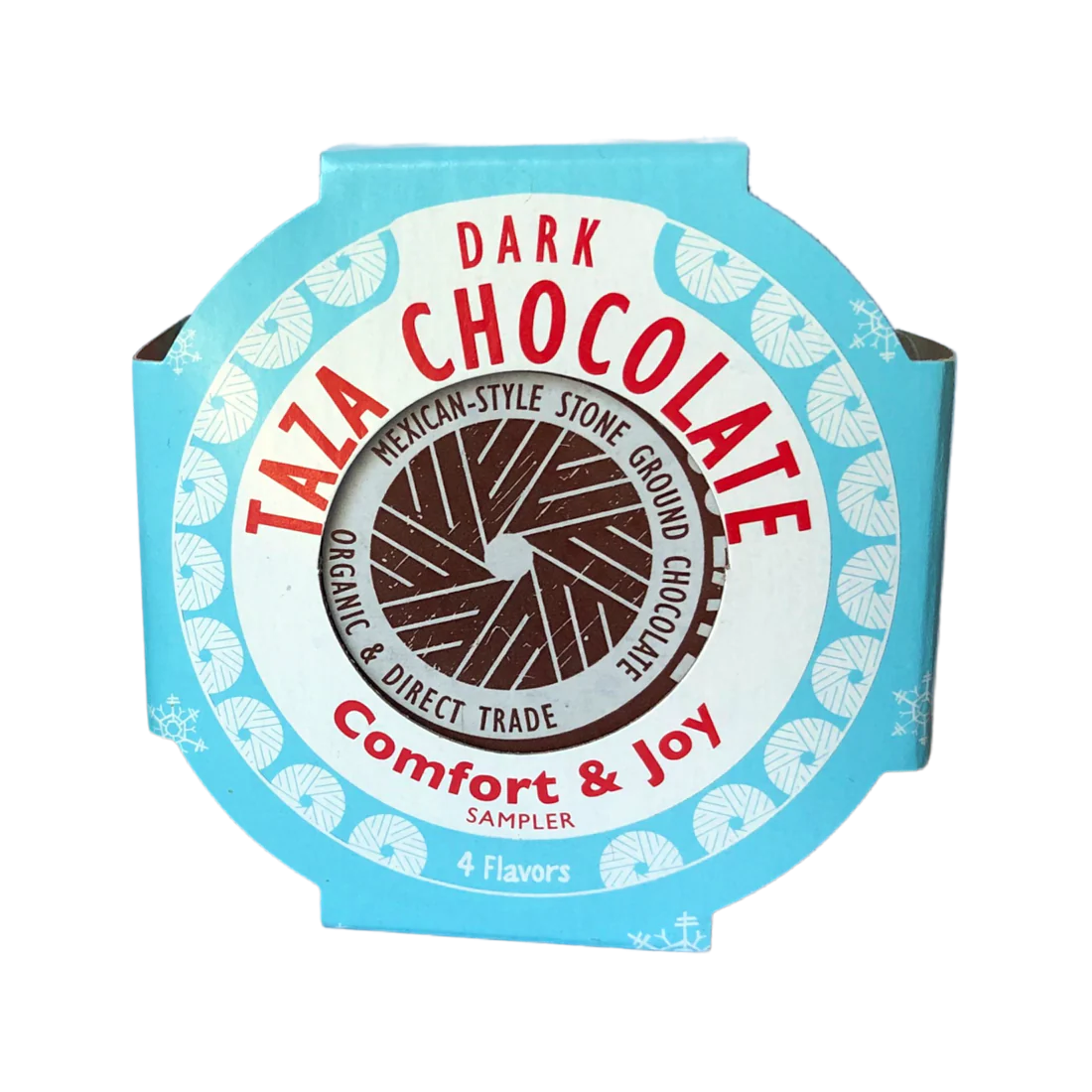 A festive quartet of comfort and joy, this Oaxacan Sampler gift pack brings bold, beautiful flavor to the holiday season. Inside are four discs of stone ground, Mexican-style chocolate—each crafted from organic, Direct Trade Certified cacao and packed with rich, rustic texture. Wrapped for gifting and perfect for sharing (or savoring solo), it’s a delicious way to celebrate tradition with a twist.