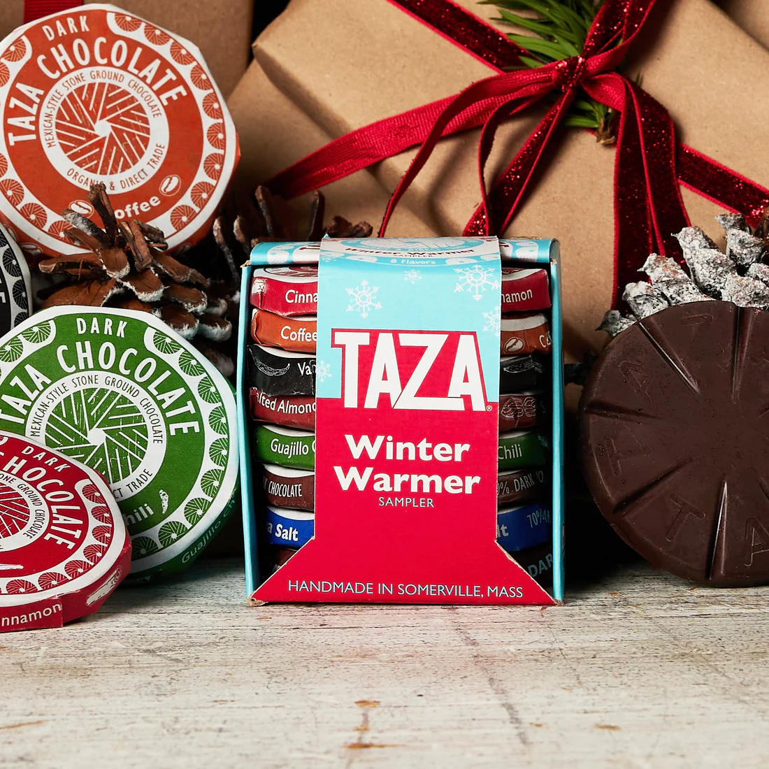 Spice up the season with this festive sampler of eight bold flavors of Mexican-style chocolate. Crafted from organic, Direct Trade Certified cacao and stone ground for that signature gritty texture, each disc offers a taste of tradition with a holiday twist. Perfect for gifting, sharing, or cozying up with a cup of chocolatey comfort.