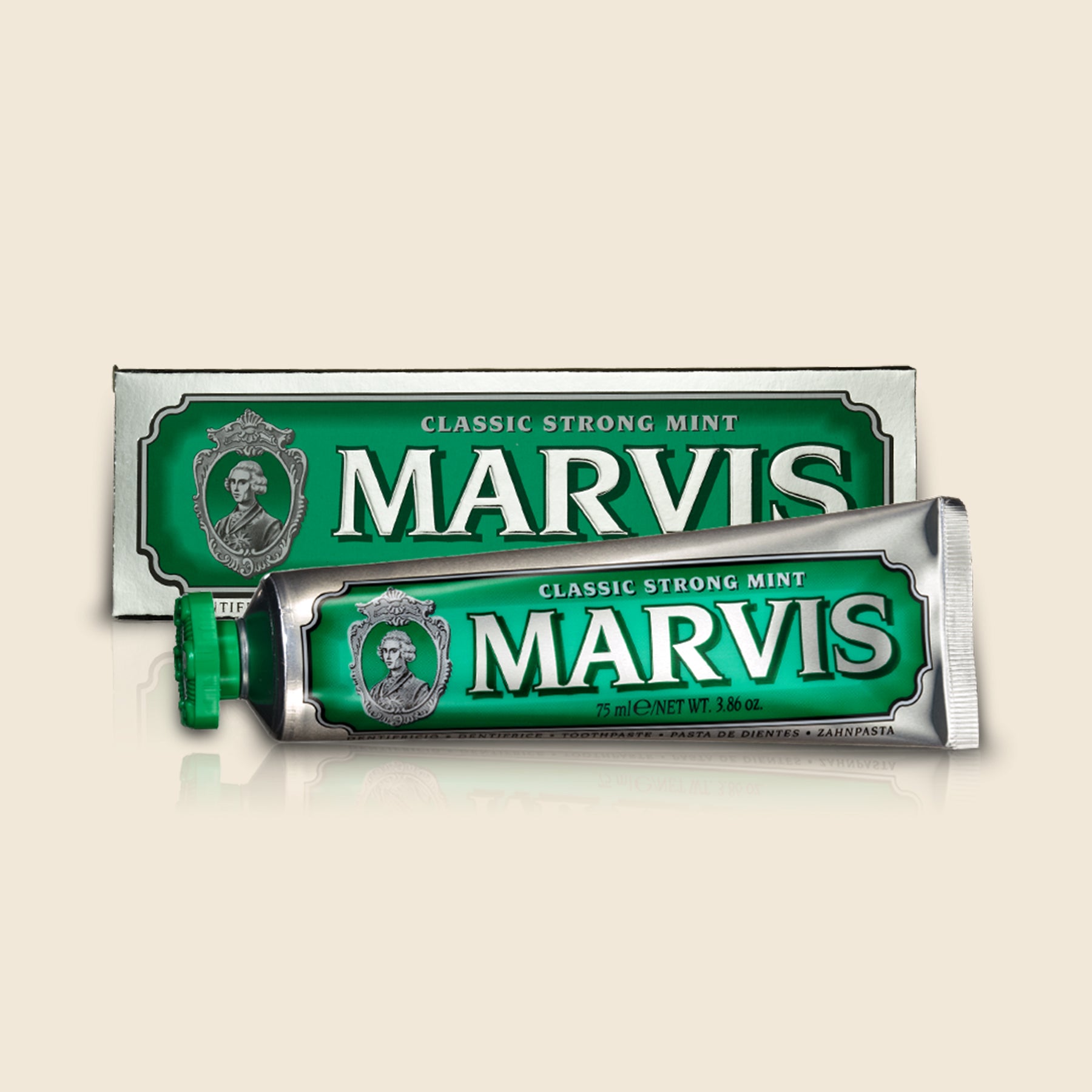 Strong Mint is Marvis at its most iconic—a bold burst of peppermint that delivers intense, long-lasting freshness with every brush. Clean, classic, and unmistakably cool, it’s the flavor that defines the brand.