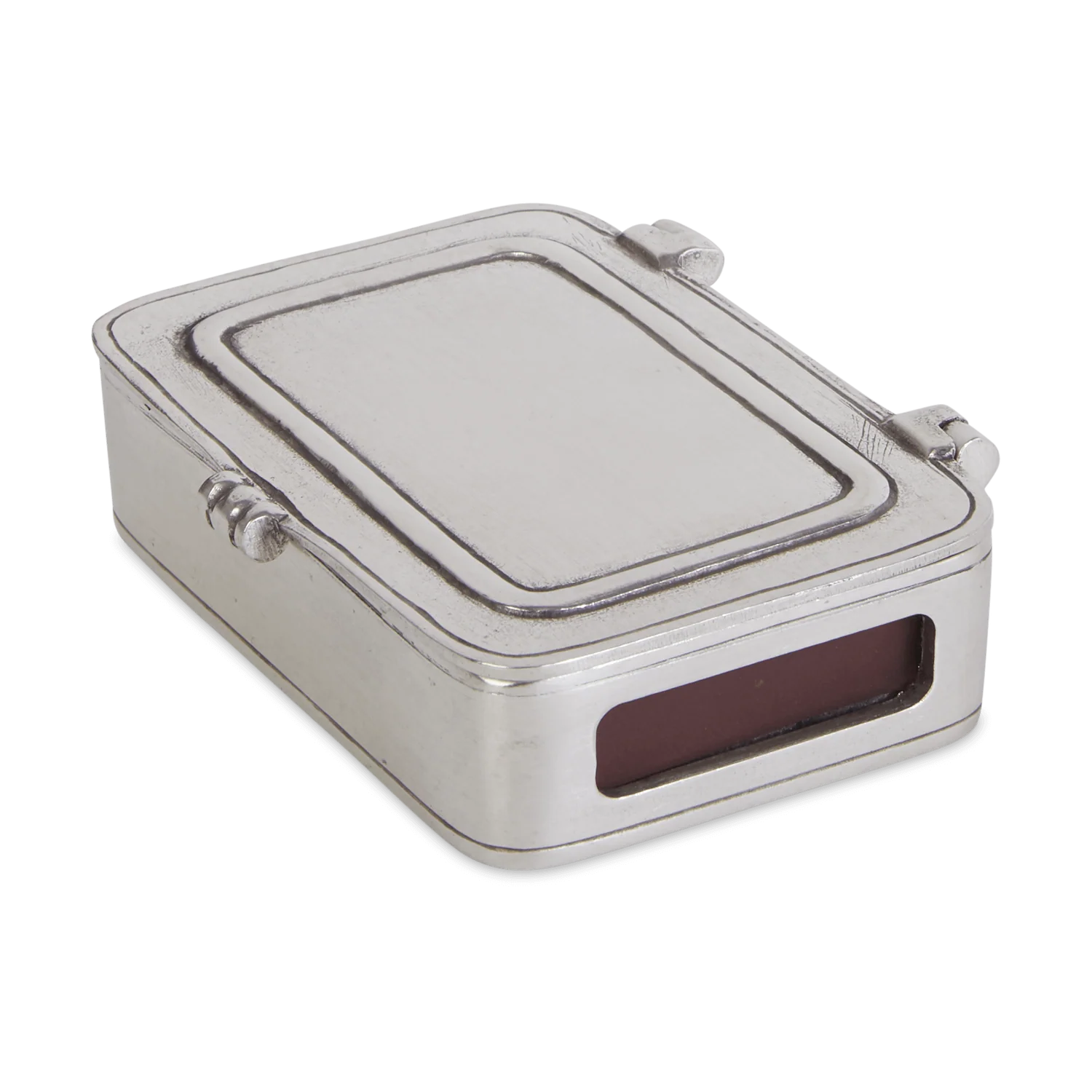 A classic vessel for every day use, this pewter matchbox is equal parts form and function. Its sleek, understated design adds a quiet elegance to any space—perfect for lighting candles, incense, or the fireplace. Each one includes a box of matches, two spare strikers, and a surface that engraves beautifully for a personal touch. Designed to be refilled and cherished for years to come.