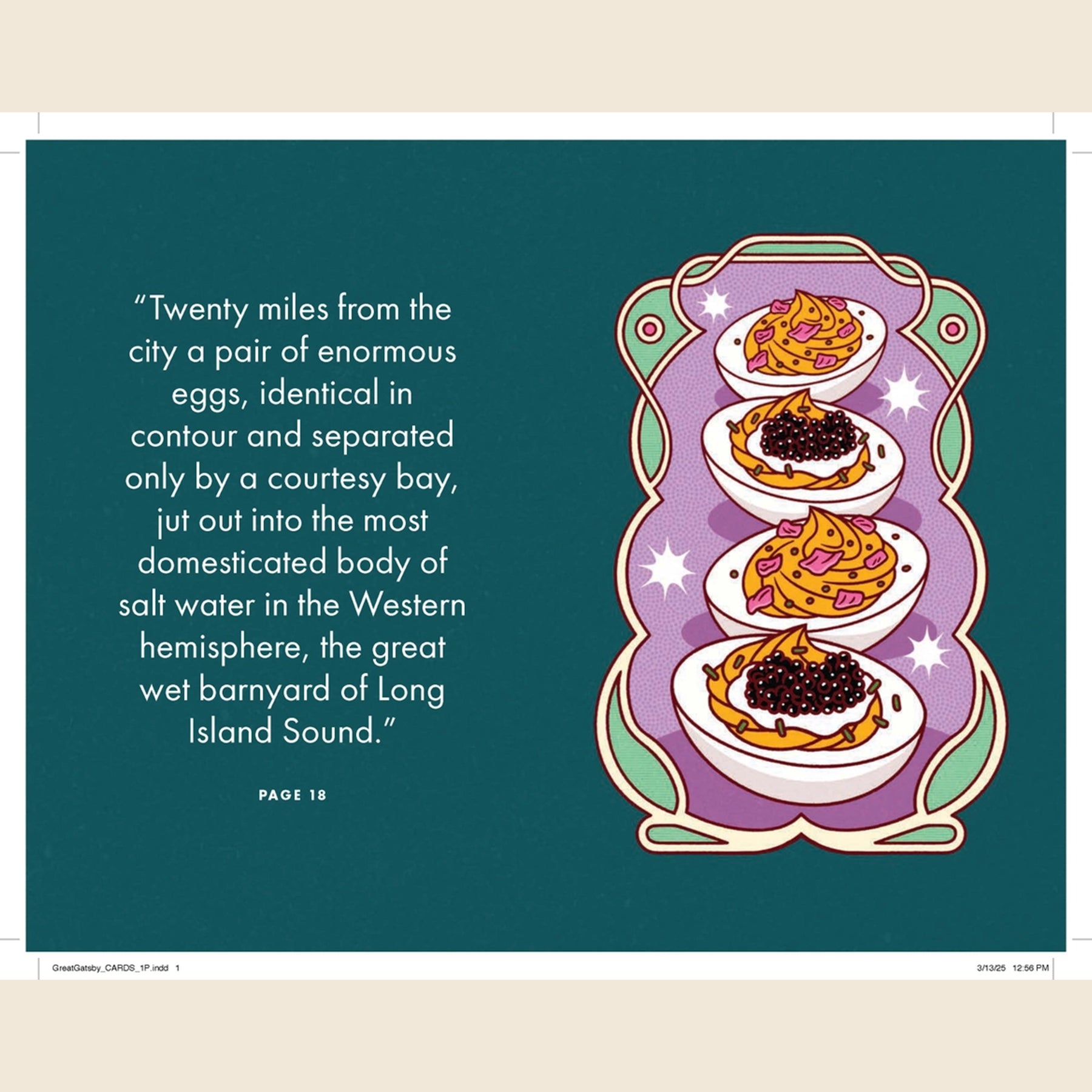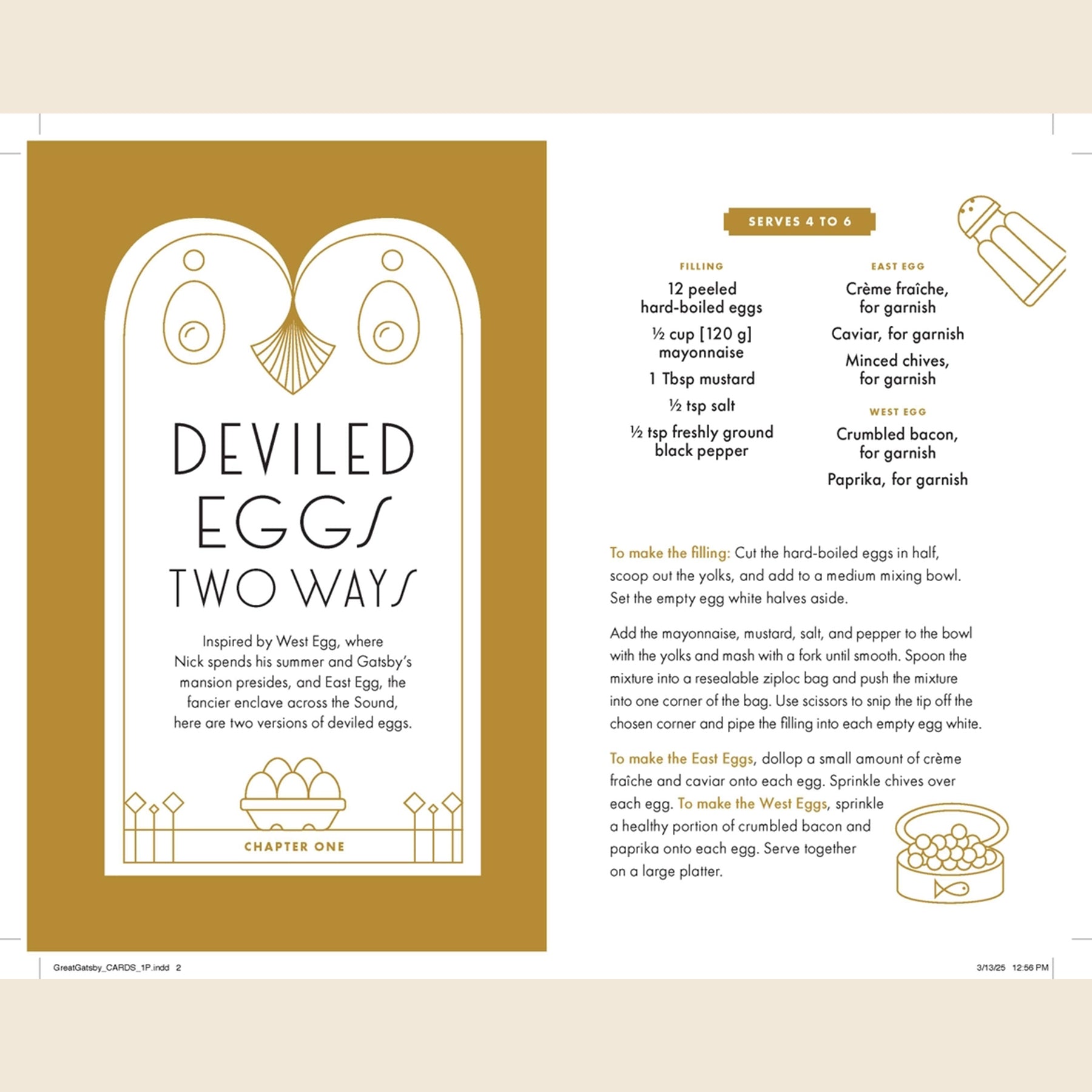 Raise your coupe and step into the decadent world of *The Great Gatsby* with this lavishly entertaining edition of the complete novel, infused with food and drink inspired by the story itself. Created for devoted fans of the great American classic, this special volume features 15 recipes drawn from the indulgent meals and libations enjoyed by Gatsby and his glittering circle. Cleverly tucked throughout the full-length novel are removable recipe cards—ranging from elegant cocktails and savory bites to lingering sweets—inviting you to taste the excess, glamour, and allure of the Jazz Age. A literary experience that goes beyond the page, this edition lets you truly savor the world of Gatsby, one cocktail at a time.