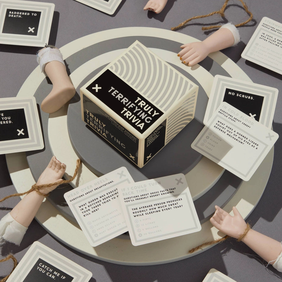 Trivia should be fun—not feel like a homework assignment. That’s exactly why Truly Terrifying Trivia by Brass Monkey leans into the weird, the creepy, and the unexpectedly fascinating. Packed with random true crime facts and generally unsettling knowledge, it’s designed to entertain, not overwhelm. The twist? You’ll choose questions from delightfully misleading categories. Take “Suicide Squad,” for example—those questions are about Dr. Kevorkian. Naturally. Darkly fun, surprising, and perfect for game nights that like to flirt with the macabre, this trivia set is equal parts spooky and smart.
