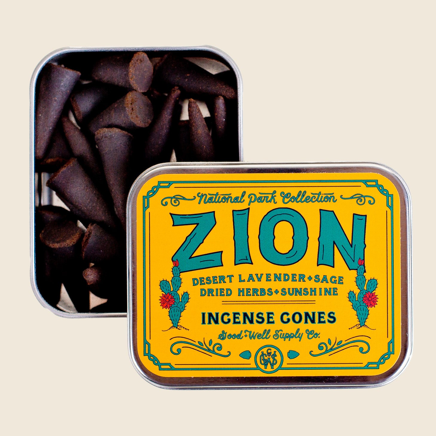 Zion carries the scent of sunbaked cliffs and desert trails—where wild sage and lavender catch the breeze. These incense cones burn slow and steady, with notes of dried herbs and warm canyon air that ground the senses and summon the stillness of red rock country.