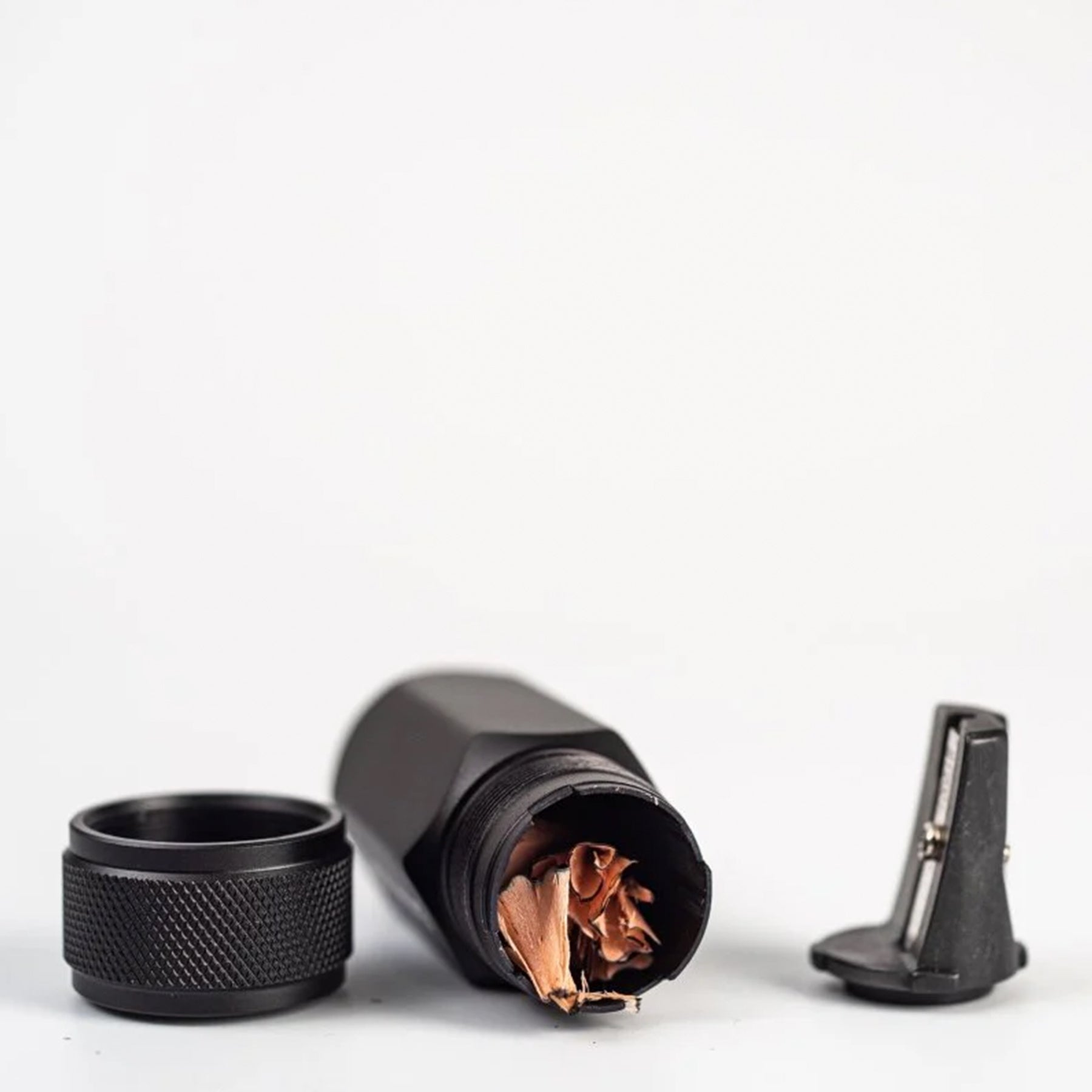 The Blackwing One-Step Long Point Sharpener is designed to deliver a precise, curved point that stays sharp and resists breakage. Crafted from durable machined aluminum and fitted with a premium German steel blade, it combines lasting strength with exceptional performance. Compact enough to slip into your pocket or bag, it’s a reliable companion for studio work, travel, or everyday carry. The integrated canister holds up to three fresh sharpenings before needing to be emptied. Available in Black and Grey.