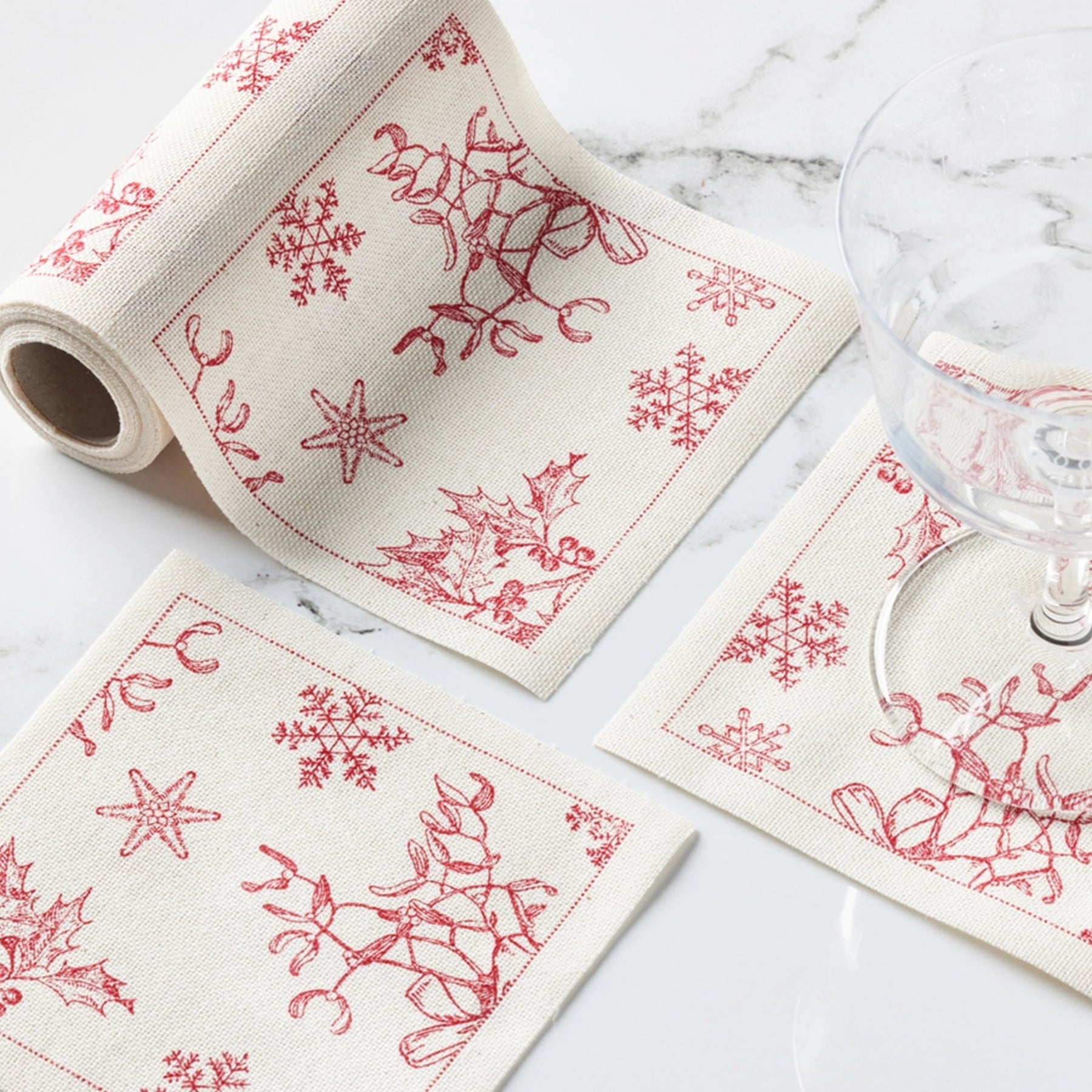 Holly Berry Recycled Cotton Cocktail Napkins 50 Units