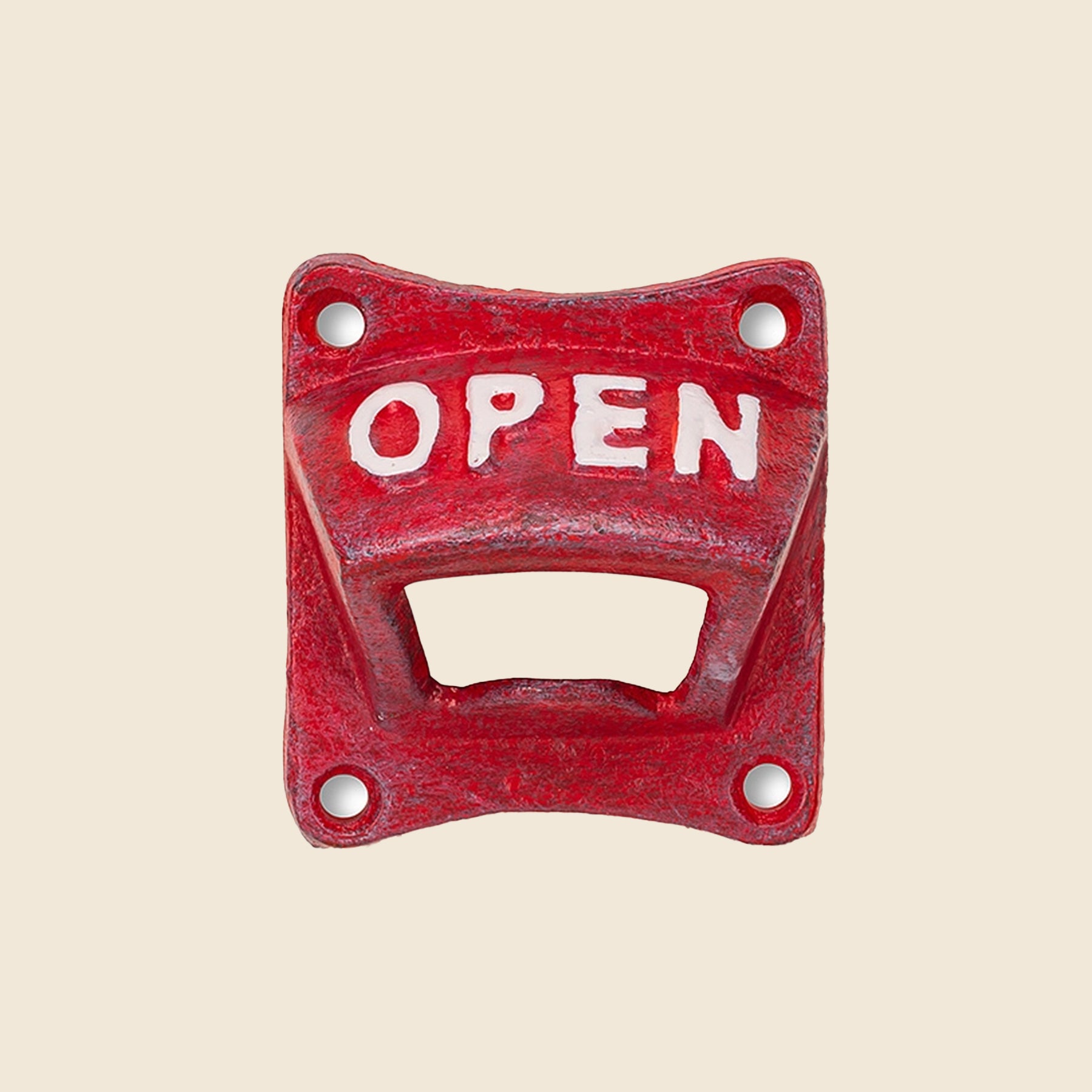 Add vintage charm to your kitchen, patio, or bar with this antique-style wall-mounted bottle opener. Crafted from sturdy cast iron and finished in a weathered red paint, it brings a nostalgic feel that’s both functional and decorative. The timeless design makes quick work of pop-top bottles, while the aged finish gives it the look of a well-loved classic. Mount it where the good times happen—it’s always ready to crack open a cold one.