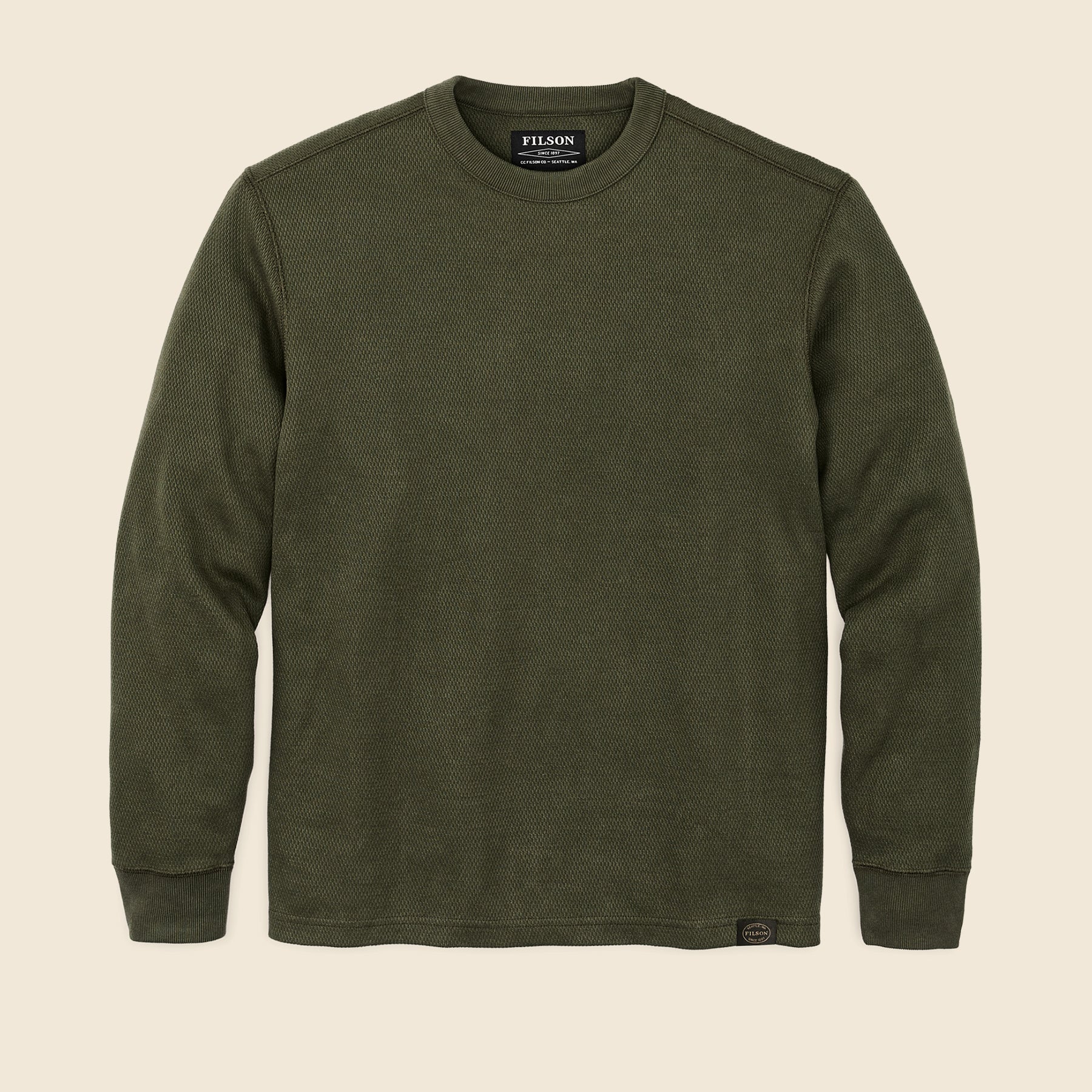 Waffle Knit Thermal Crewneck in Mossy Rock