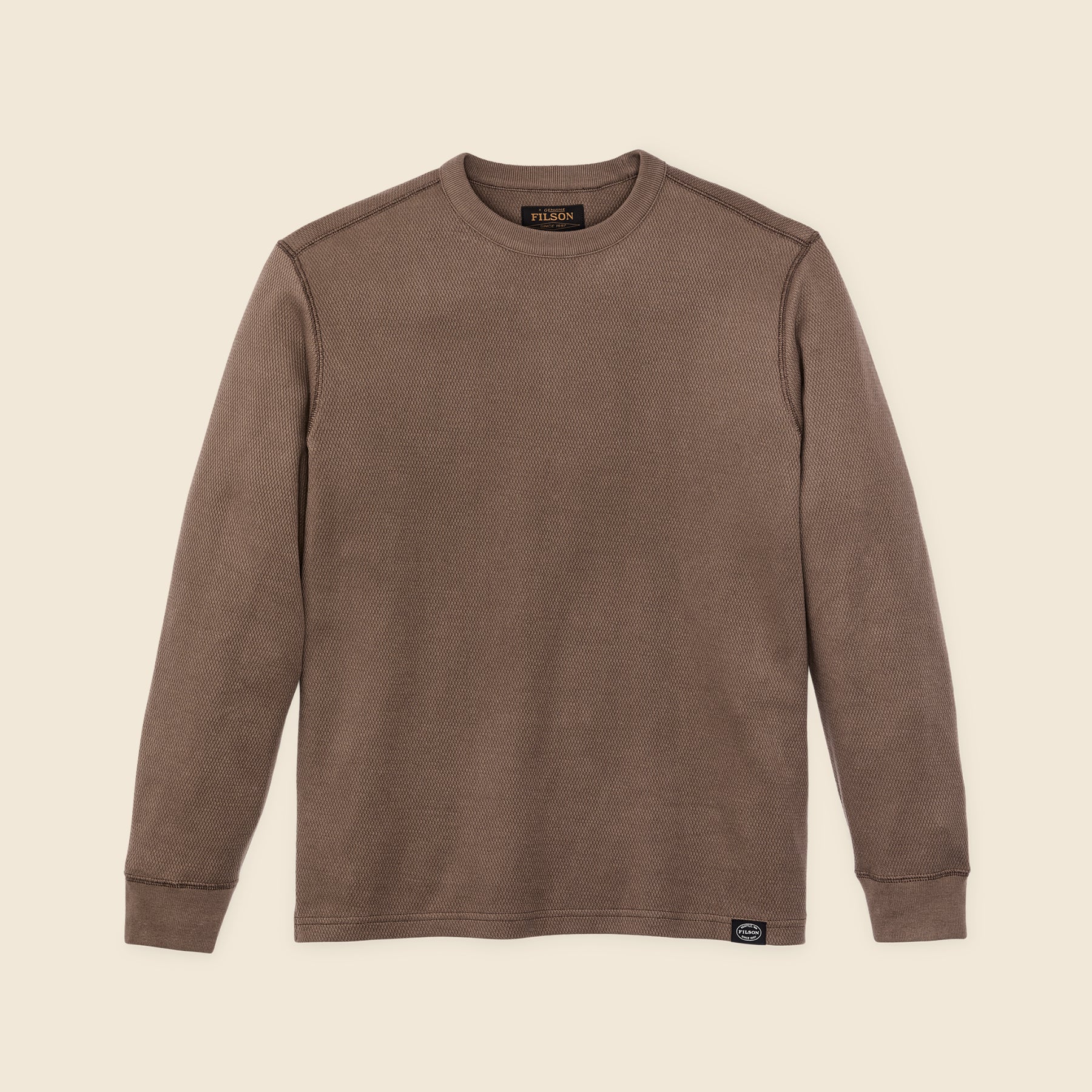 Waffle Knit Thermal Crewneck in Brown