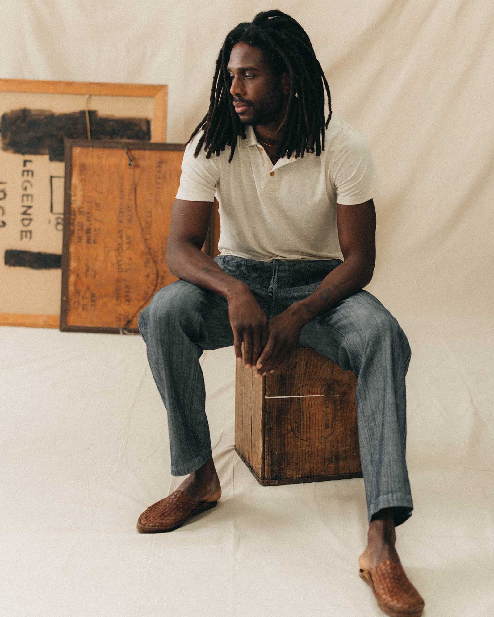 Cotton Hemp Polo in Heather Oat