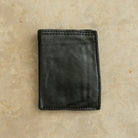 This Campomaggi Italian leather folding wallet in Black is crafted from garment-dyed natural cowhide for a rich, lived-in patina that only gets better with age. Compact yet practical, it features six card slots to keep your essentials organized without bulk plus a top pocket for cash.