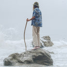 A classic camp collar, coconut-shell buttons, and two chest patch pockets give it an easy, lived-in character. The straight hem and short sleeves keep it simple — just throw it on and go.