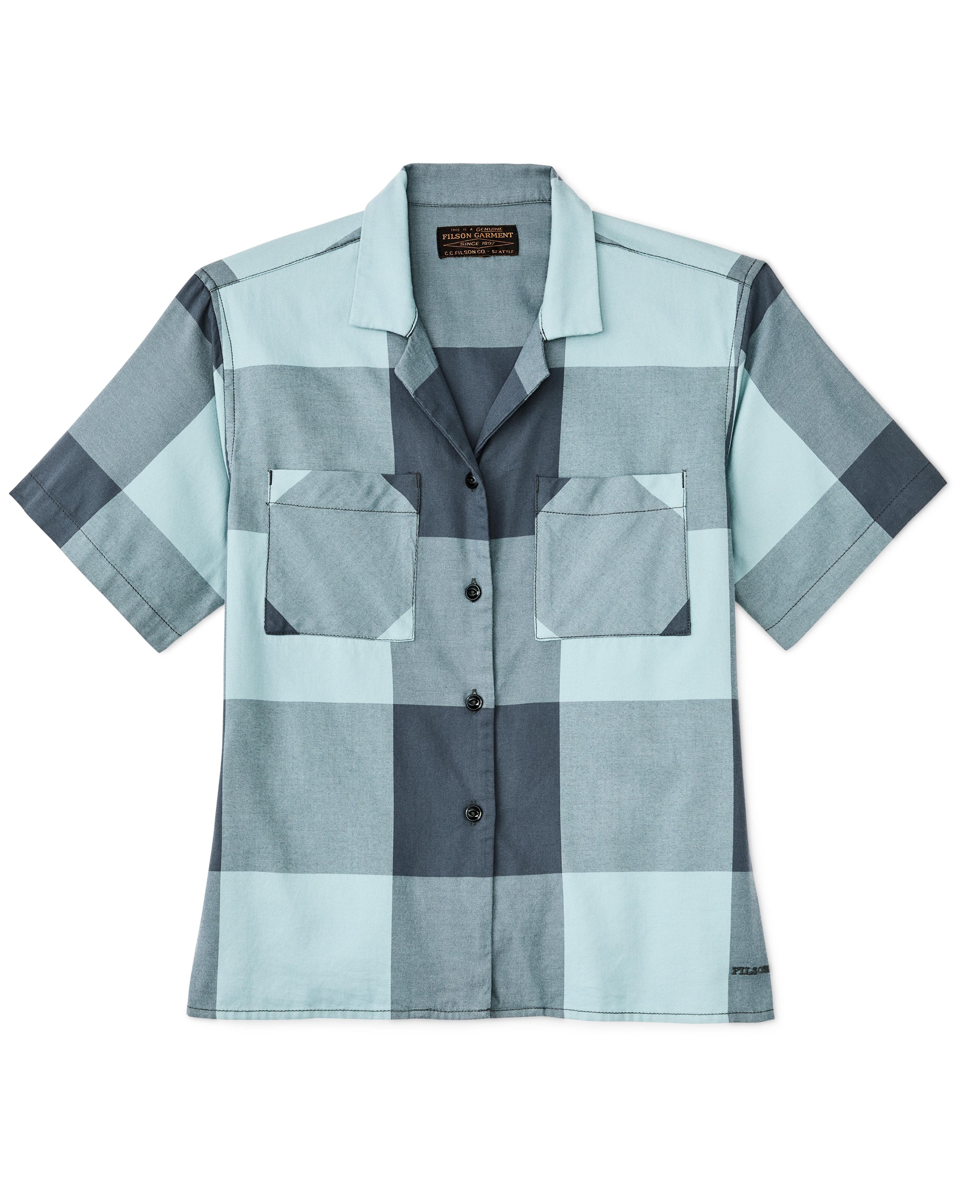 Women's Twill Short Sleeve Camp Shirt in Storm Blue Plaid
