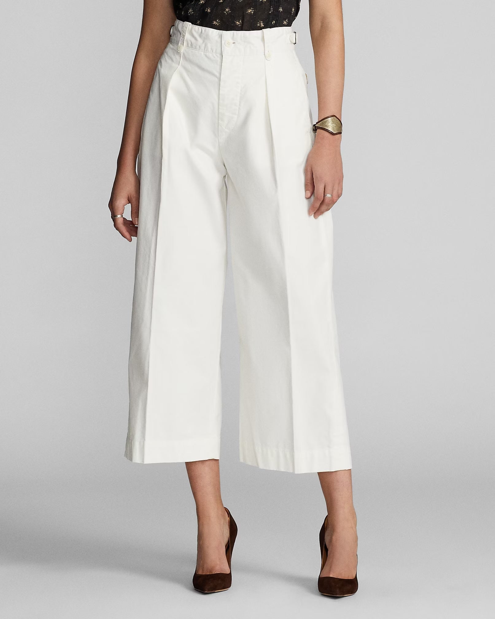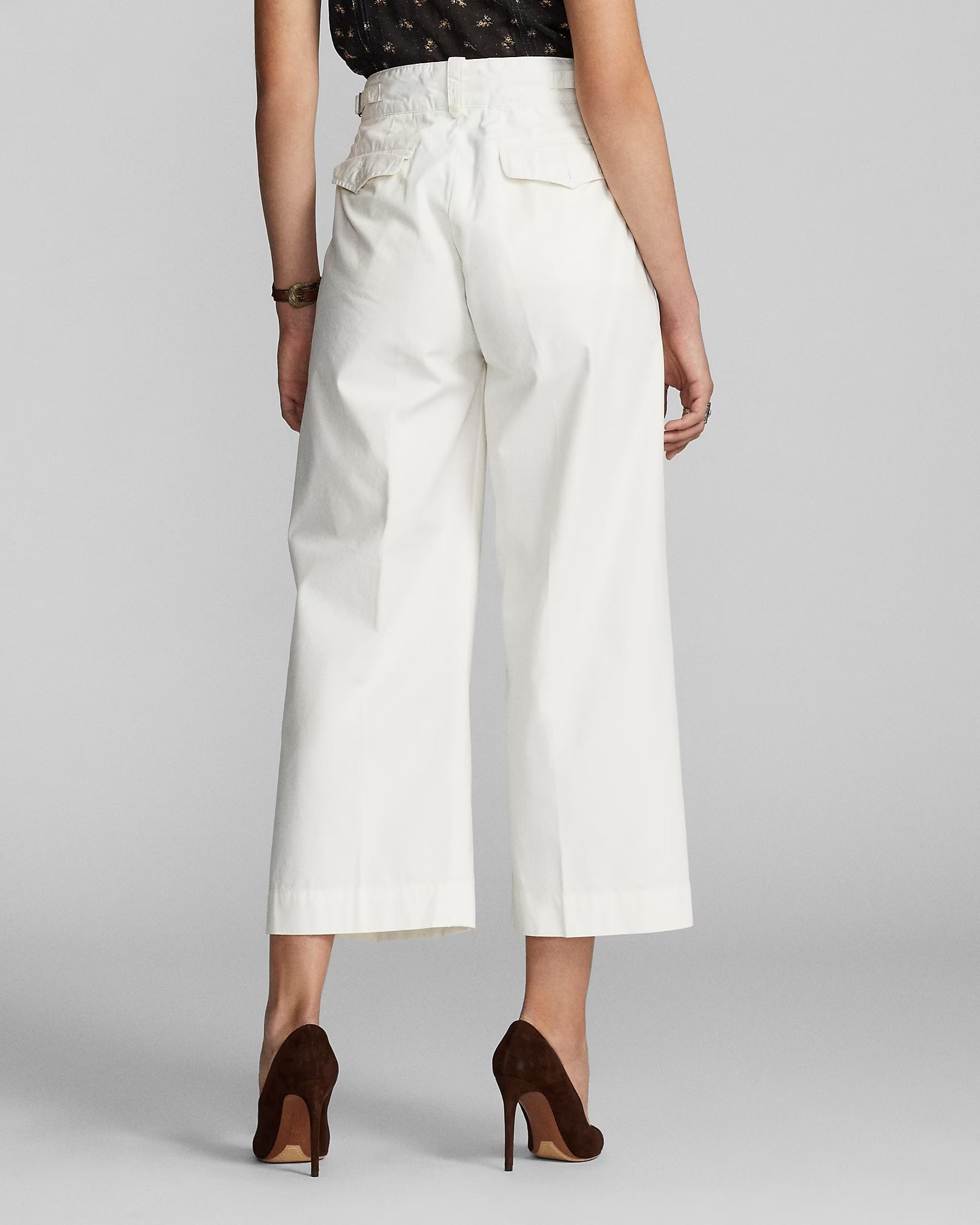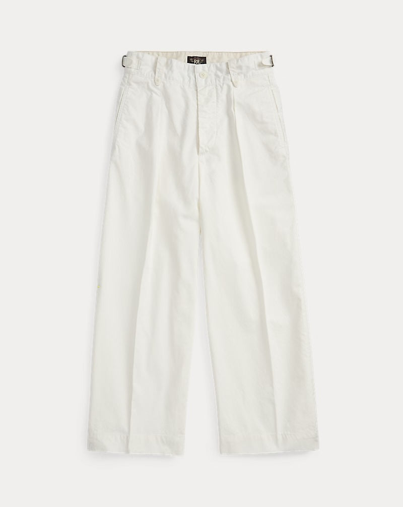 Inspired by classic 1940s tailoring, these cropped cotton poplin pants offer a fresh take on vintage style. Designed with a mid-rise and relaxed fit through the hip, thigh, and leg, they feature stitched-down pleats for subtle structure and adjustable buckled tabs at the waist for a custom fit. Buttoned belt loops, a button fly with Corozo buttons, and neatly finished pockets add to their thoughtful detailing. Crafted from 100% cotton and made in partnership with Better Cotton, they combine timeless design with a commitment to more sustainable farming practices.