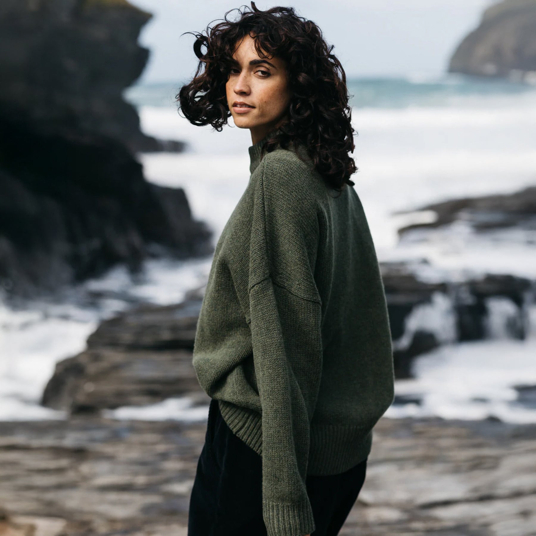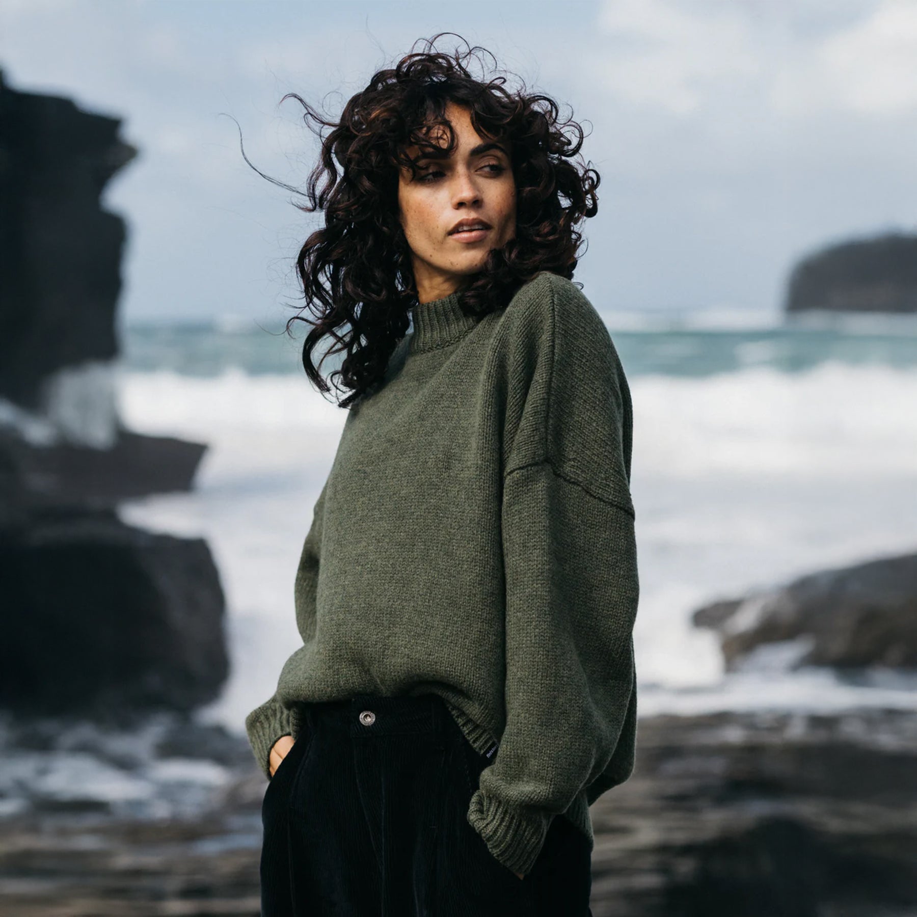 Finisterre Women's Eyre Crew Neck Jumper in Olive