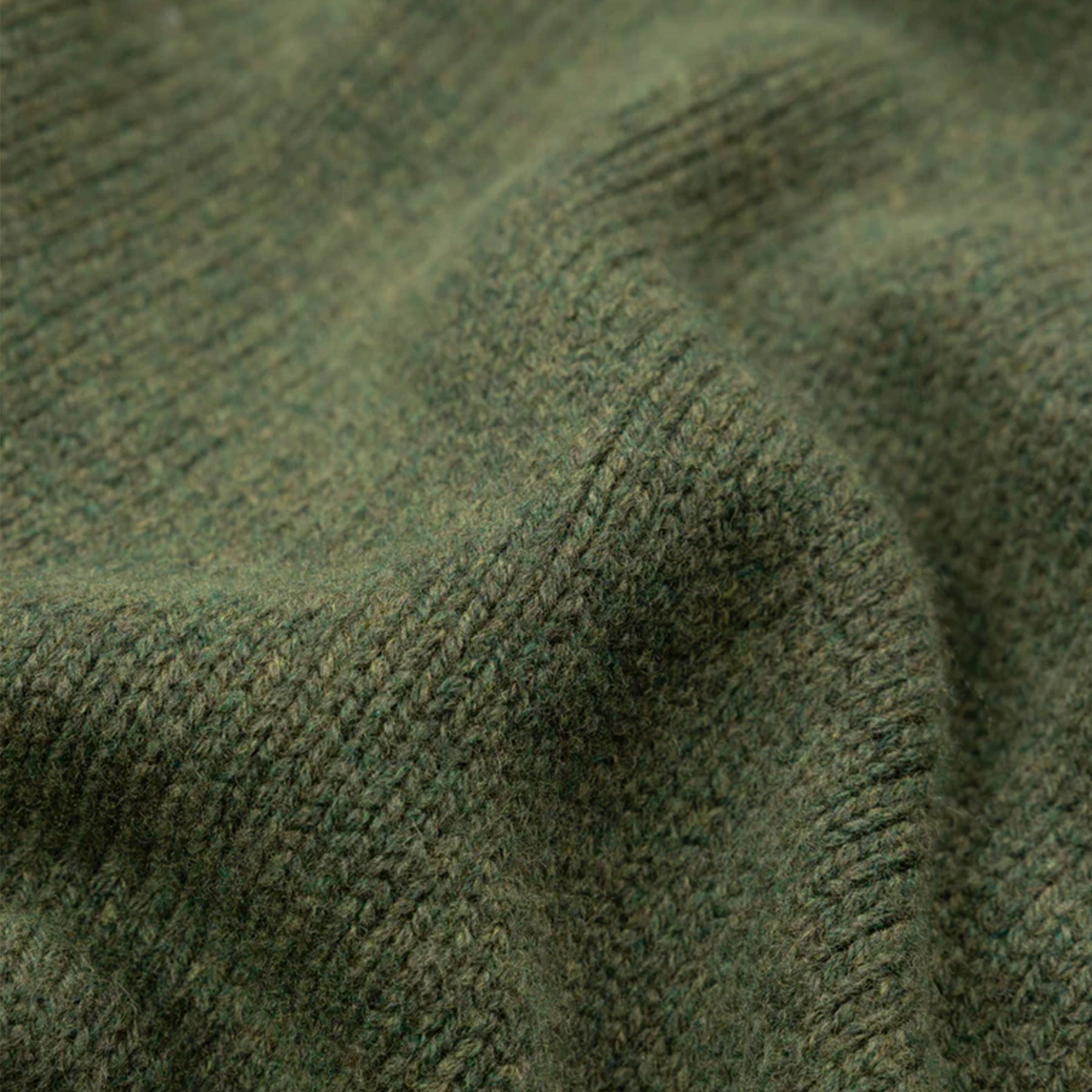 Knit from a weighty, felted wool-blend yarn, it offers the perfect balance of outdoor-ready warmth and indoor comfort. Soft and inviting, it’s the kind of layer you’ll pull on at dawn to check the surf, then dress up with denim for winter dinners with friends.