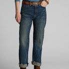 Details include a button fly with American-made hardware, signature “RRL” embroidery at the coin pocket, and a debossed leather logo patch at the back waist. With five-pocket styling and a 28" inseam, these jeans are built to wear beautifully over time.