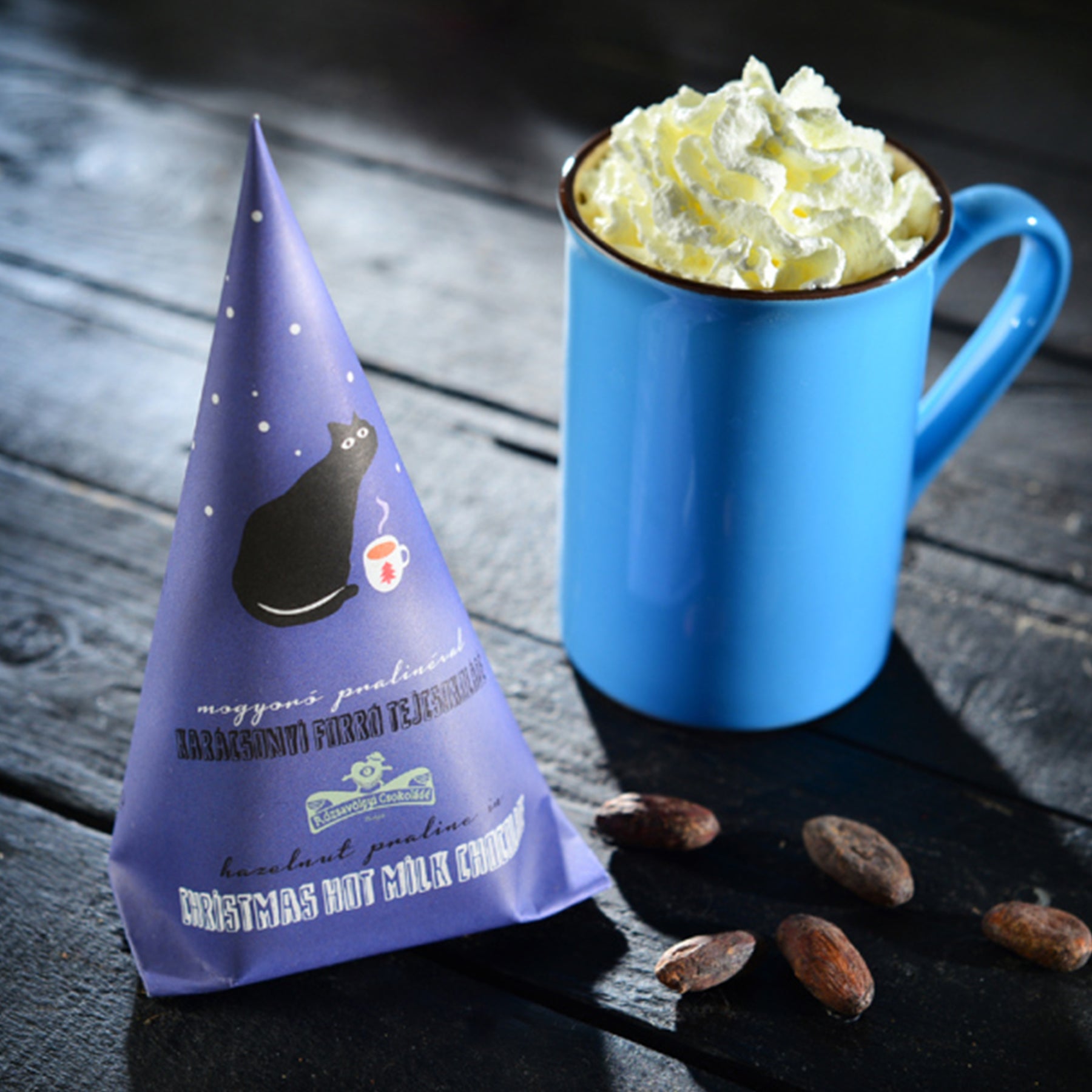 Creamy, nutty, and irresistibly smooth, this milk chocolate blend from Budapest is enriched with hazelnut praline for a decadent twist on classic hot cocoa. With 50% cocoa content, it strikes a perfect balance between rich chocolate and velvety sweetness. Just stir into hot milk or water, bring to a boil, and savor four comforting servings. Packaged in 95% recycled paper—no plastic, just the good stuff.